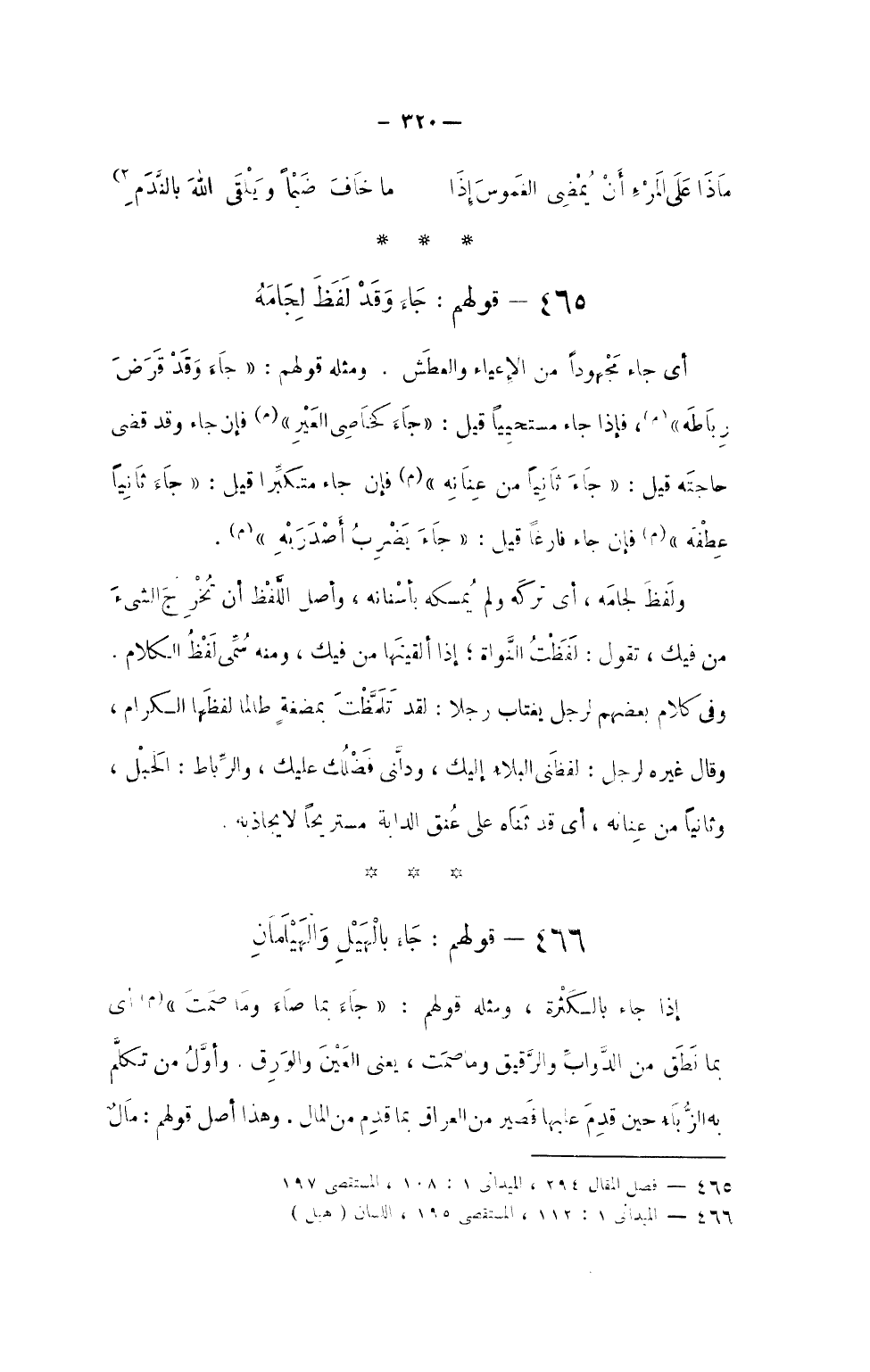 466 - قَوْلهم جَاءَ بالهيل والهيلمان