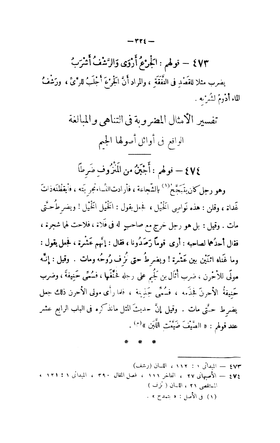تَفْسِير الْأَمْثَال المضروبة فِي التناهي وَالْمُبَالغَة الْوَاقِع فِي اوائل اصولها الْجِيم