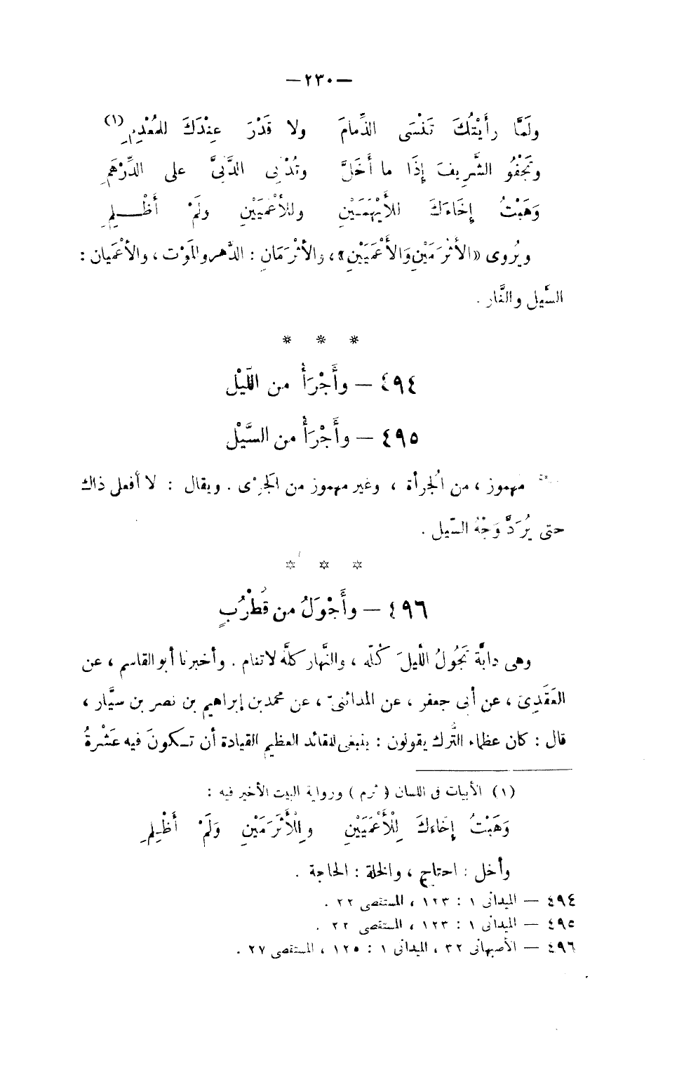 ويروى (الأثرمين والأعميين) والأثرمان الدَّهْر وَالْمَوْت والأعميان السَّيْل وَالنَّار