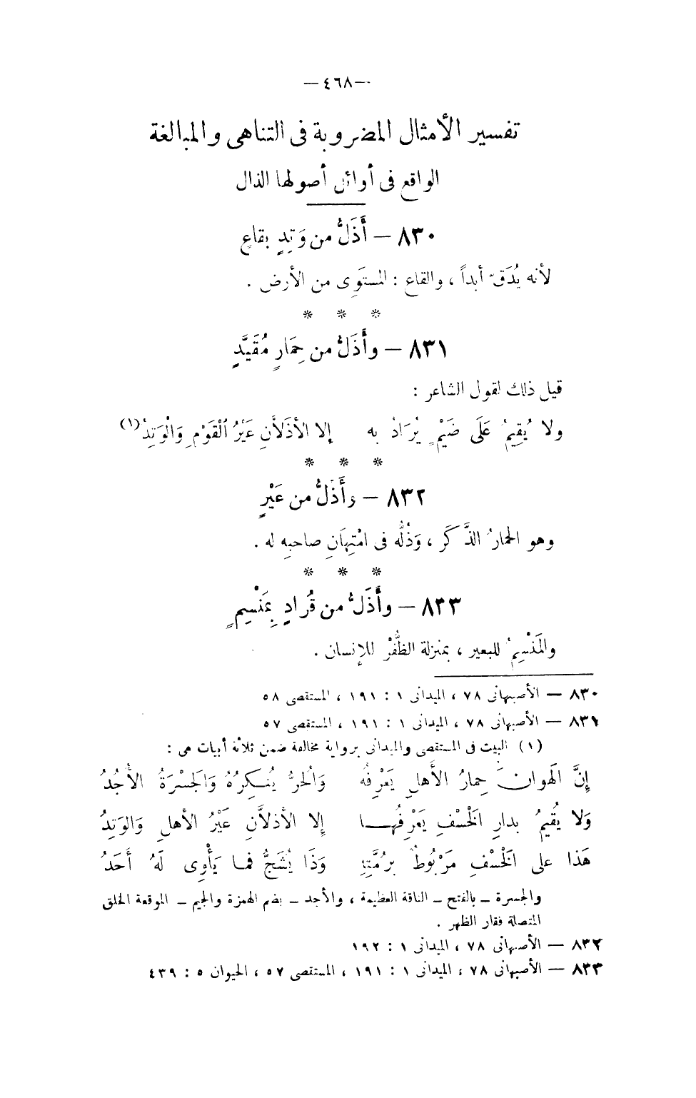 تَفْسِير الْأَمْثَال المضروبة فِي التناهي وَالْمُبَالغَة الْوَاقِع فِي أَوَائِل أُصُولهَا الذَّال