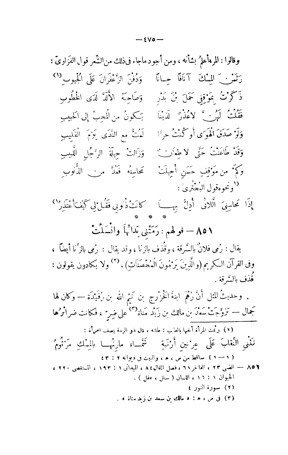 وَقَالُوا الْمَرْء أعلم بِشَأْنِهِ وَمن أَجود مَا جَاءَ فِي ذَلِك من الشّعْر قَول الْفَزارِيّ