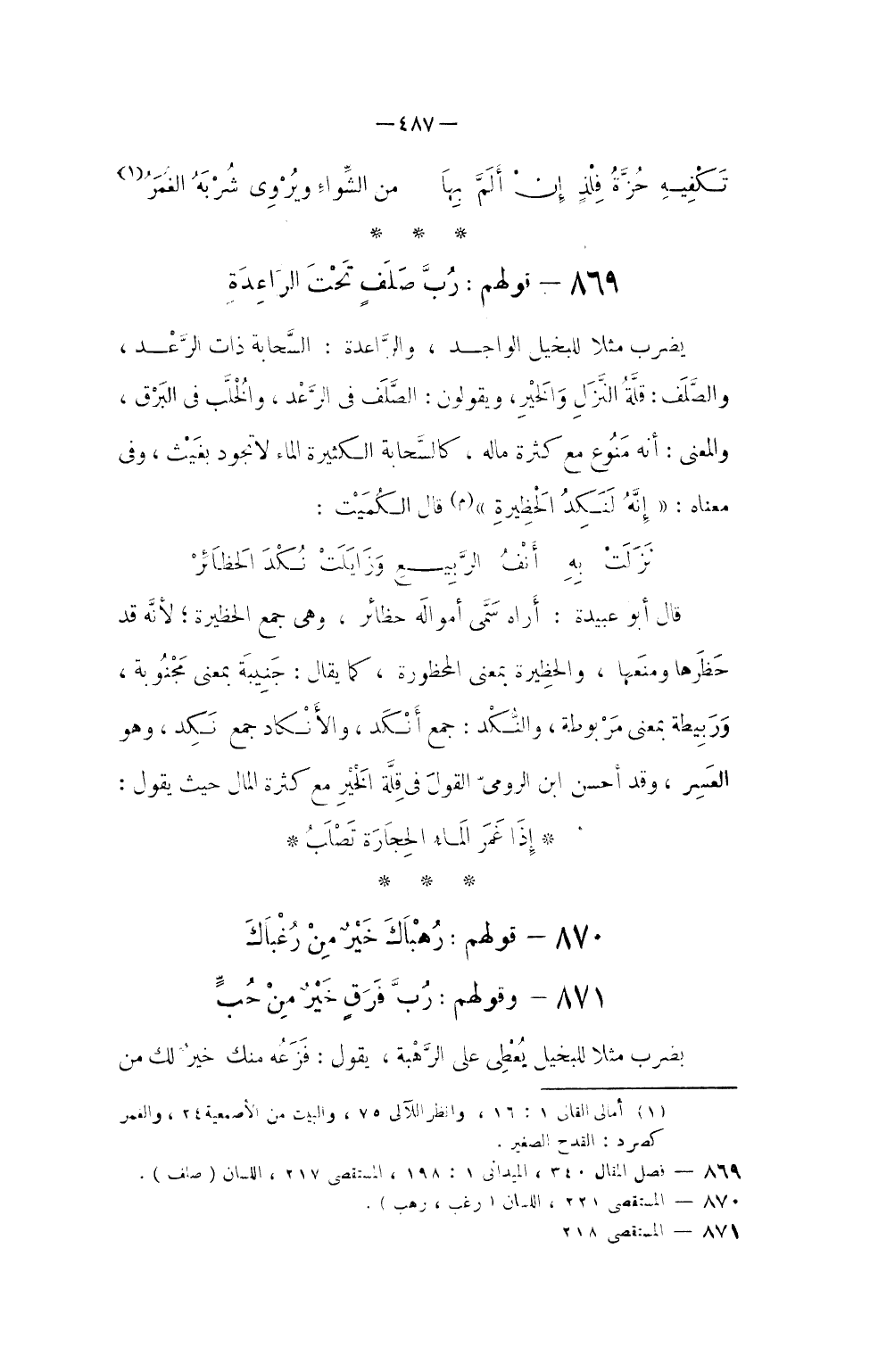 869 - قَوْلهم رب صلف تَحت الراعدة