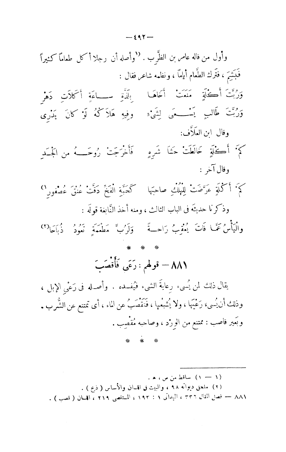 وَأَصله أَن رجلا أكل طَعَاما كثيرا فبشم فَترك الطَّعَام أَيَّامًا ونظمه شَاعِر فَقَالَ