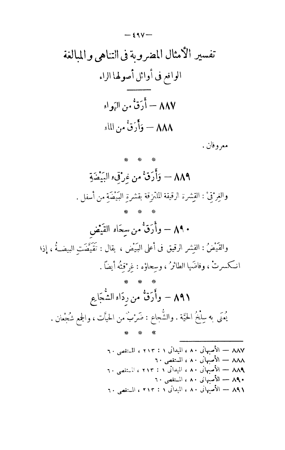 تَفْسِير الْأَمْثَال المضروبة فِي التناهي وَالْمُبَالغَة الْوَاقِع فِي أَوَائِل أُصُولهَا الرَّاء