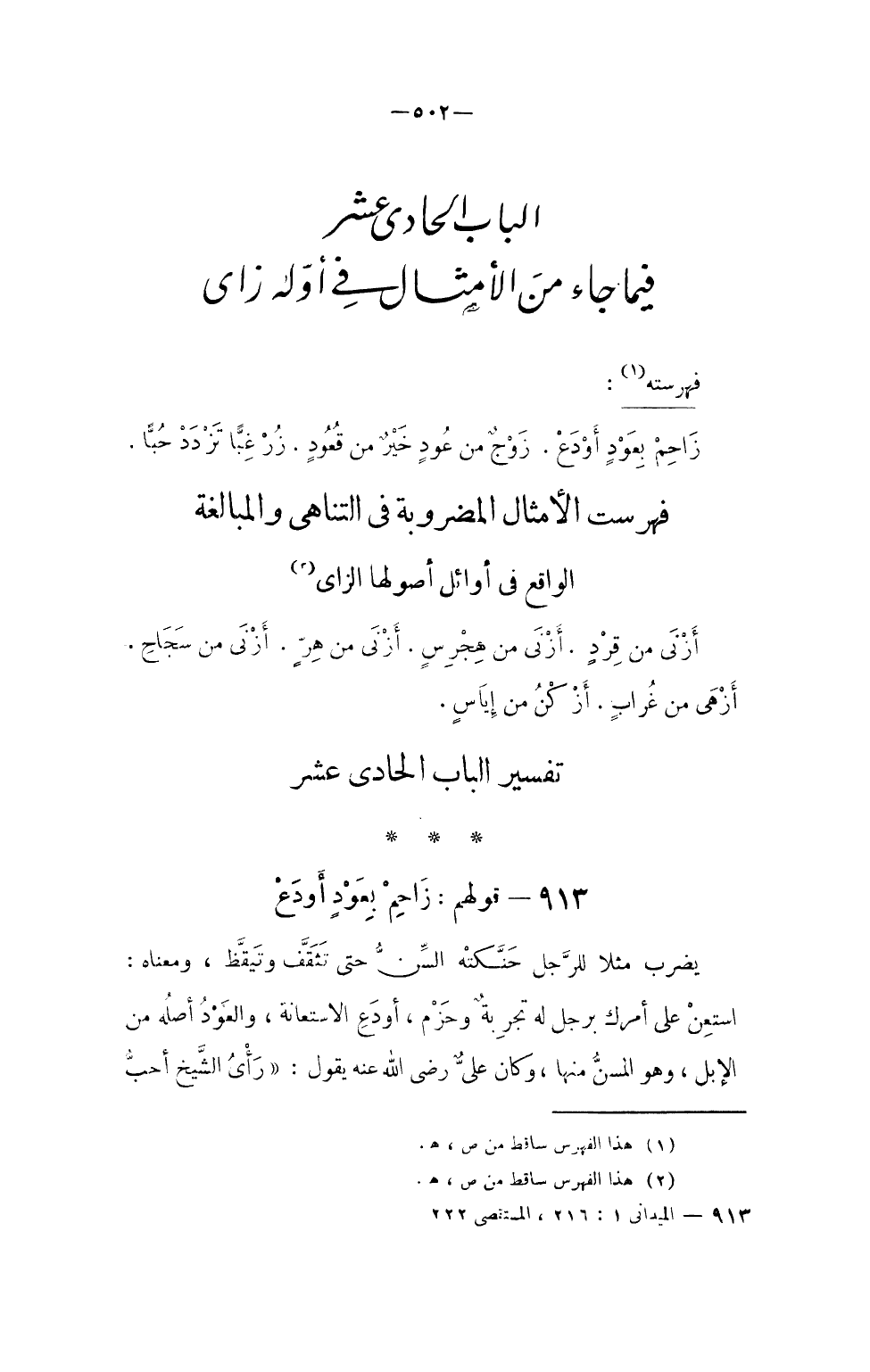 فهرست الْأَمْثَال المضروبة فِي التناهي وَالْمُبَالغَة الْوَاقِع فِي أَوَائِل أُصُولهَا الزَّاي