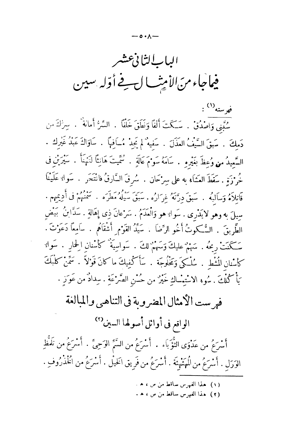 فهرست الْأَمْثَال المضروبة فِي التناهي وَالْمُبَالغَة الْوَاقِع فِي أَوَائِل أُصُولهَا السِّين