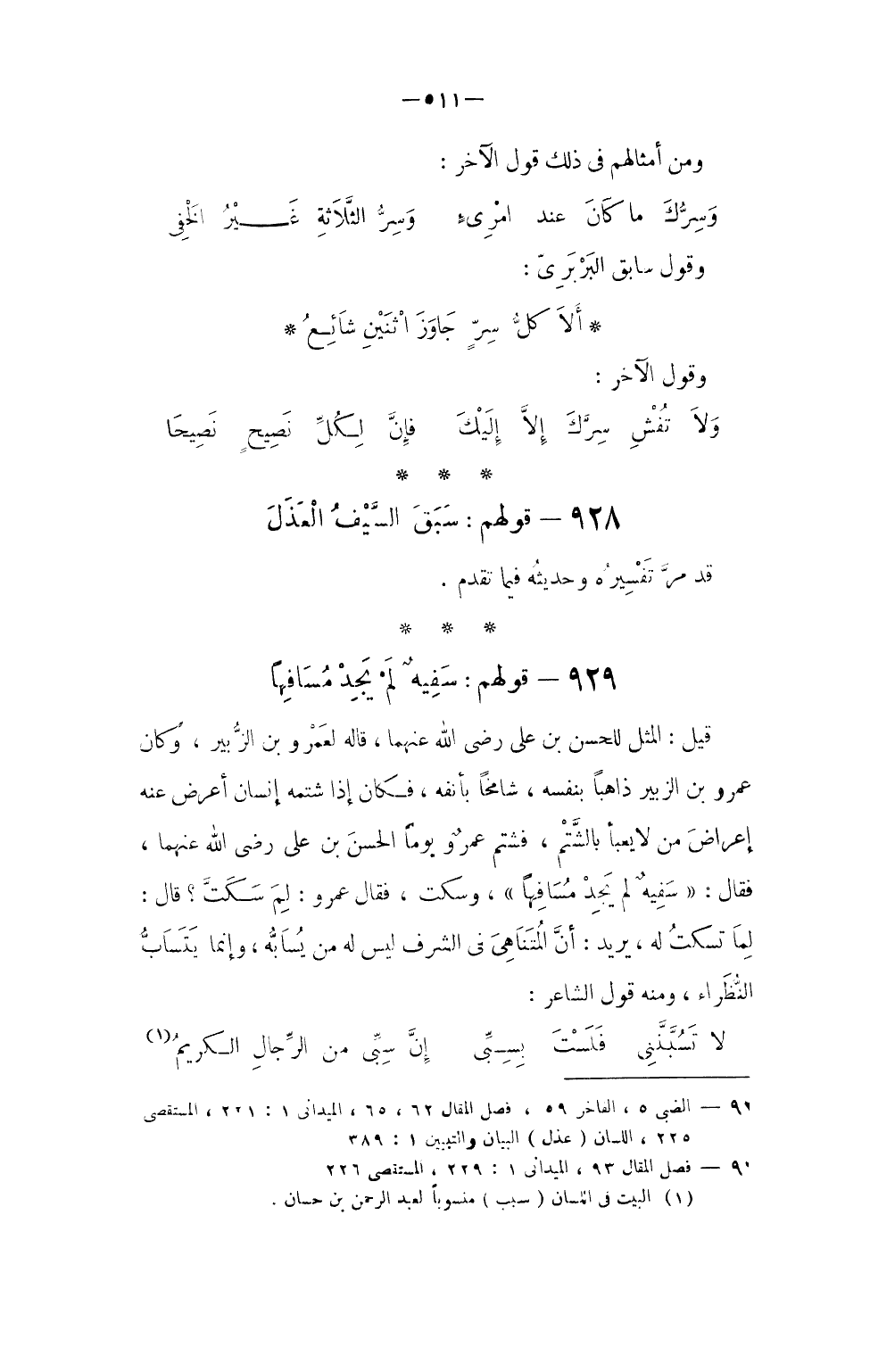 929 - قَوْلهم سَيْفه لم يجد مسافهاً