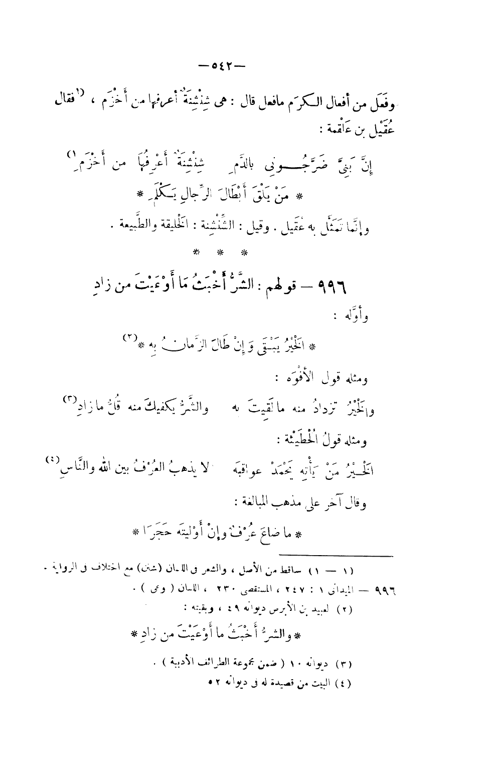 996 - قَوْلهم الشَّرّ أَخبث مَا أوعيت من زَاد