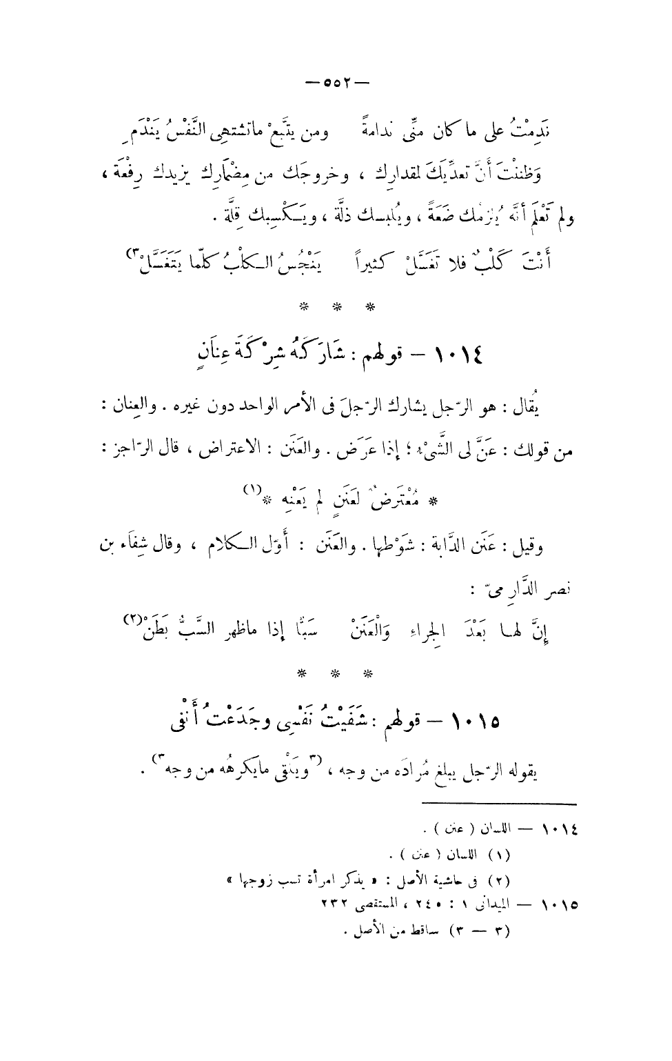 1014 - قَوْلهم شَاركهُ شركَة عنان