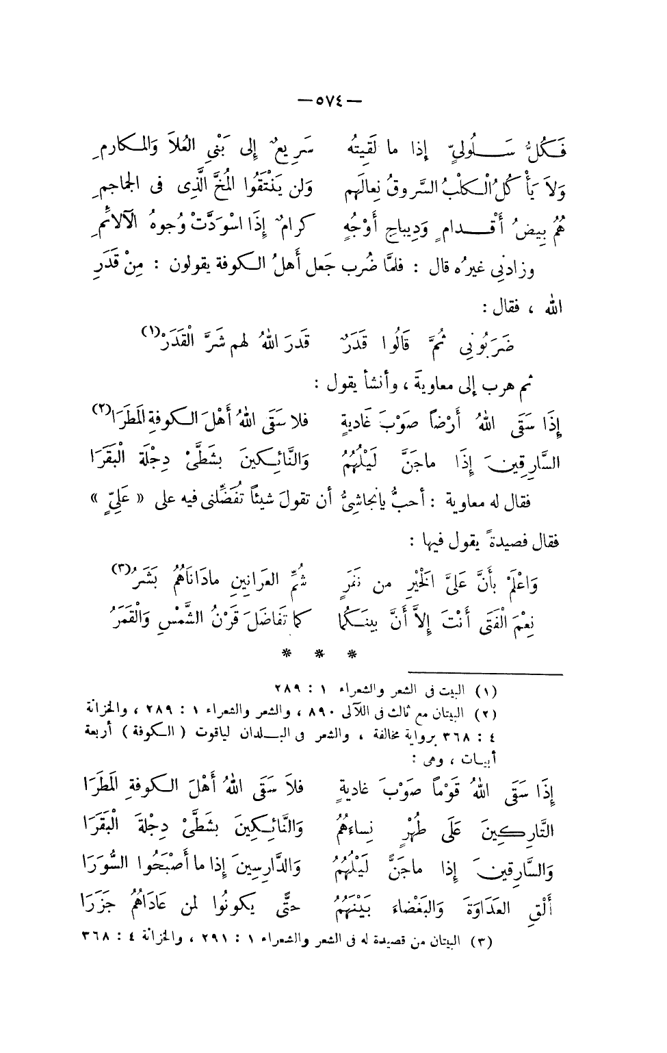 ثمَّ هرب إِلَى مُعَاوِيَة وَأَنْشَأَ يَقُول
