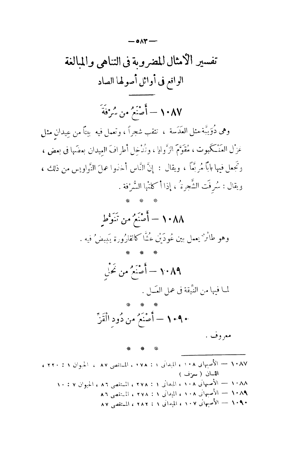 تَفْسِير الْأَمْثَال المضروبة فِي التناهي وَالْمُبَالغَة الْوَاقِع فِي أَوَائِل أُصُولهَا الصَّاد