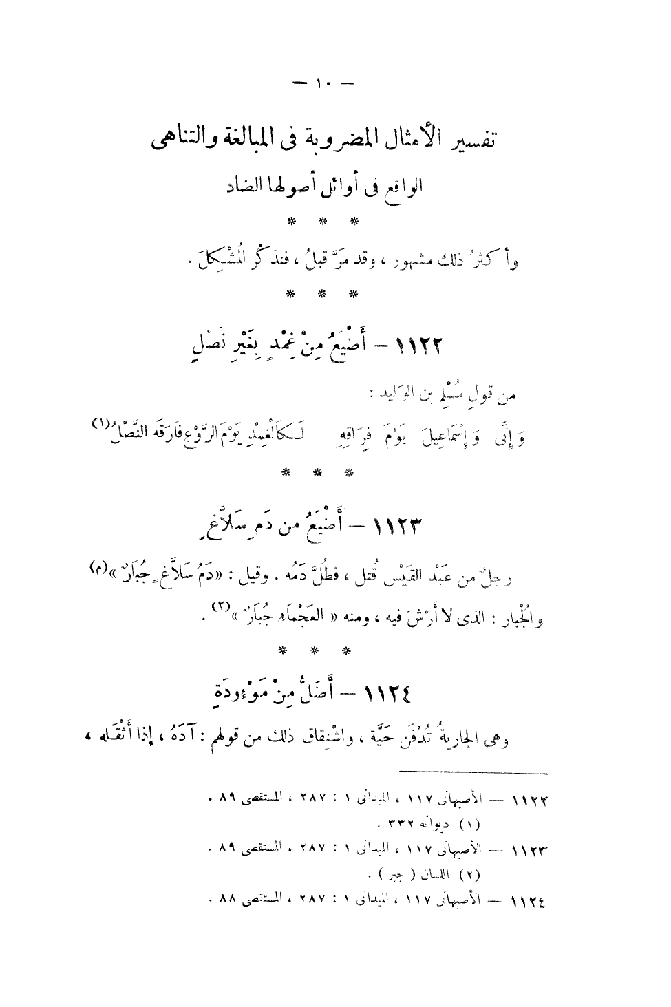 تَفْسِير الْأَمْثَال المضروبة فِي الْمُبَالغَة والتناهي الْوَاقِع فِي أَوَائِل أُصُولهَا الضَّاد