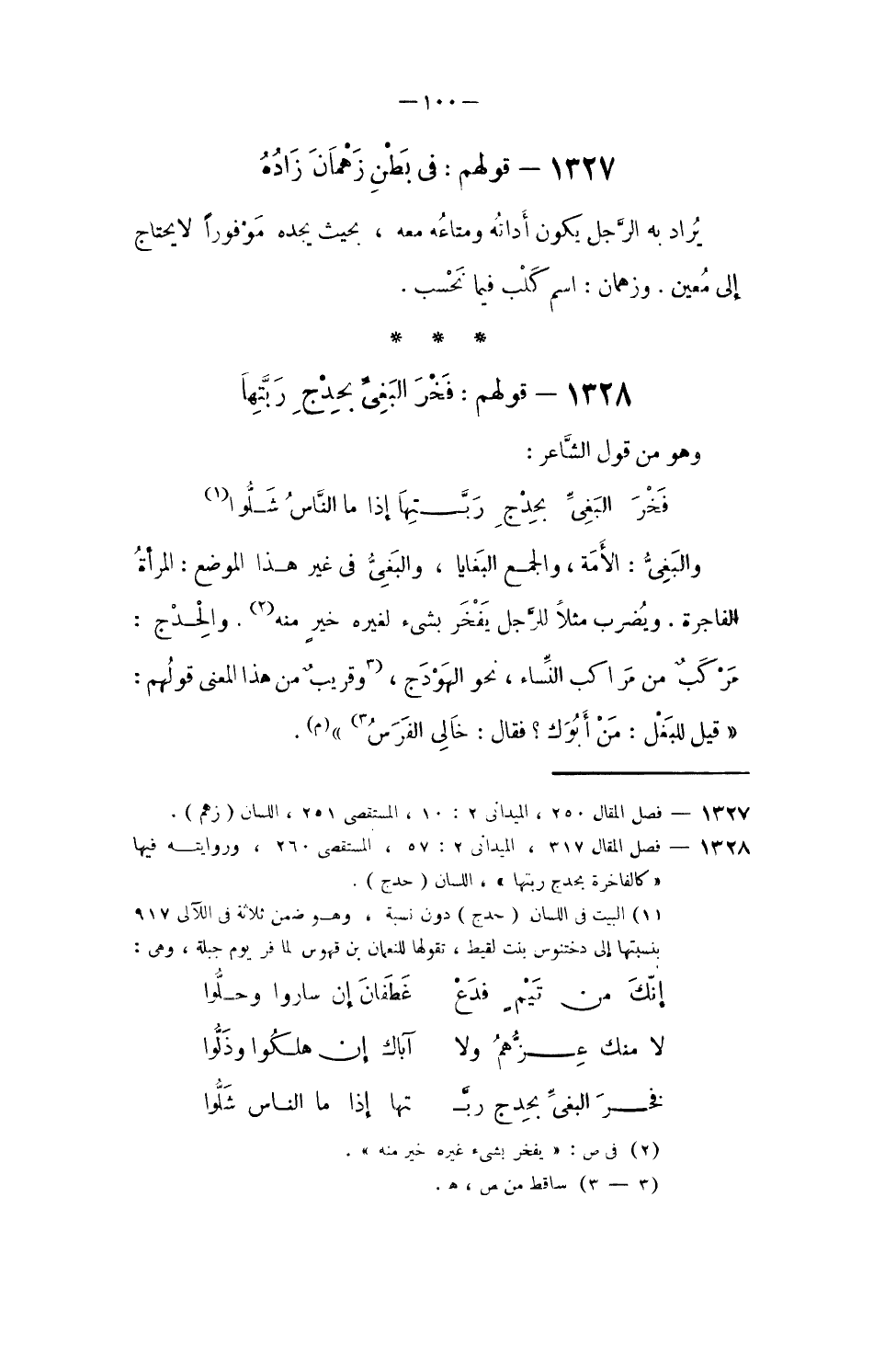 1328 - قَوْلهم فَخر البغى بحدج ربتها