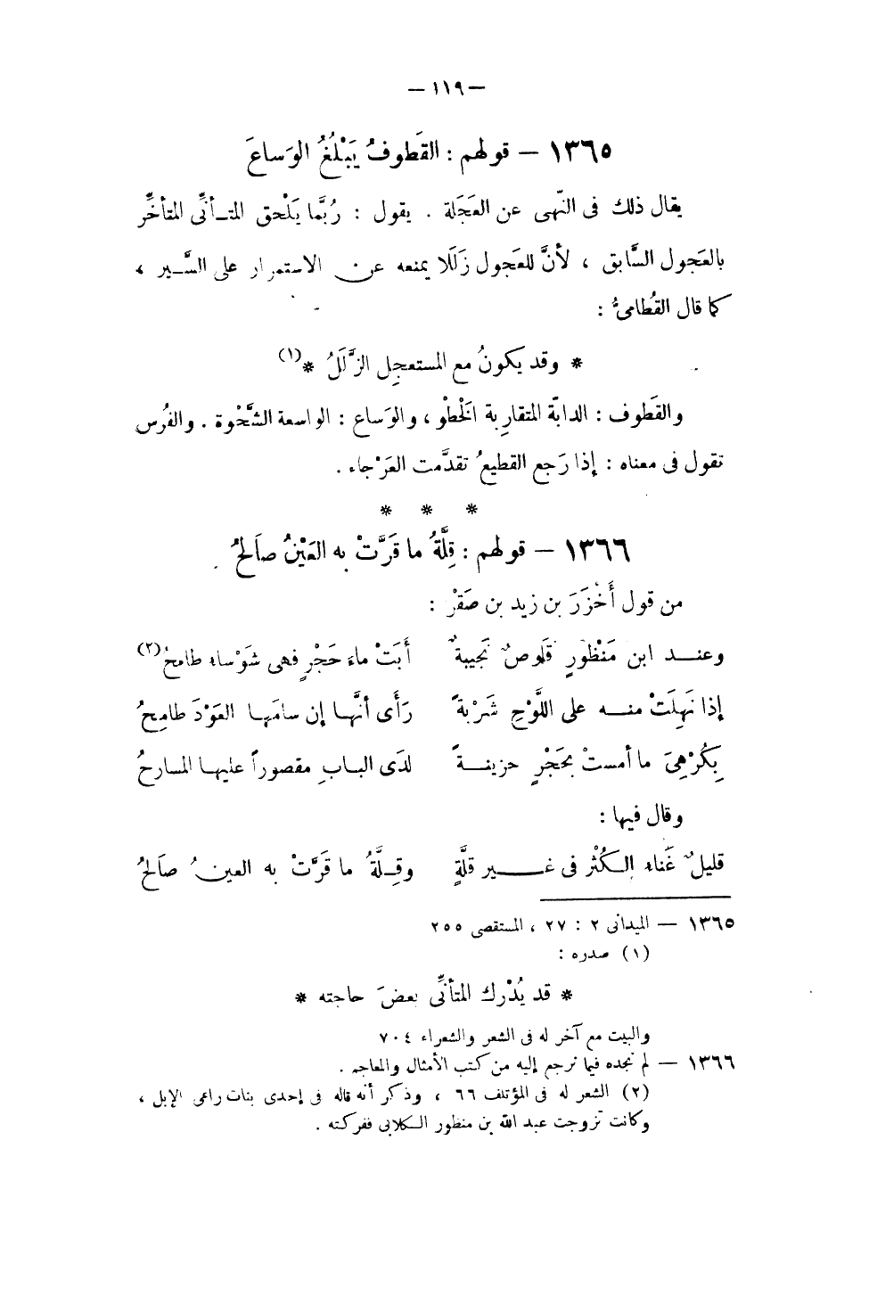 يَقُول رُبمَا يلْحق المتأنى الْمُتَأَخر بالعجول السَّابِق لِأَن للعجول زللا يمنعهُ عَن الِاسْتِمْرَار على السّير كَمَا قَالَ الْقطَامِي