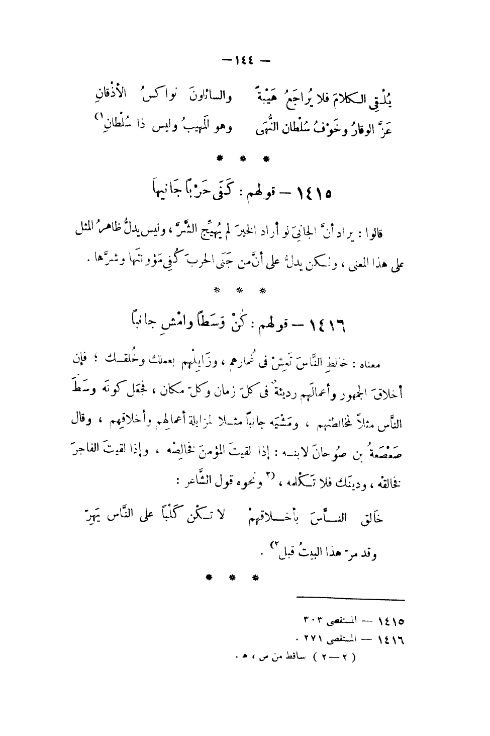 1416 - قَوْلهم كن وسطا وامش جانباً