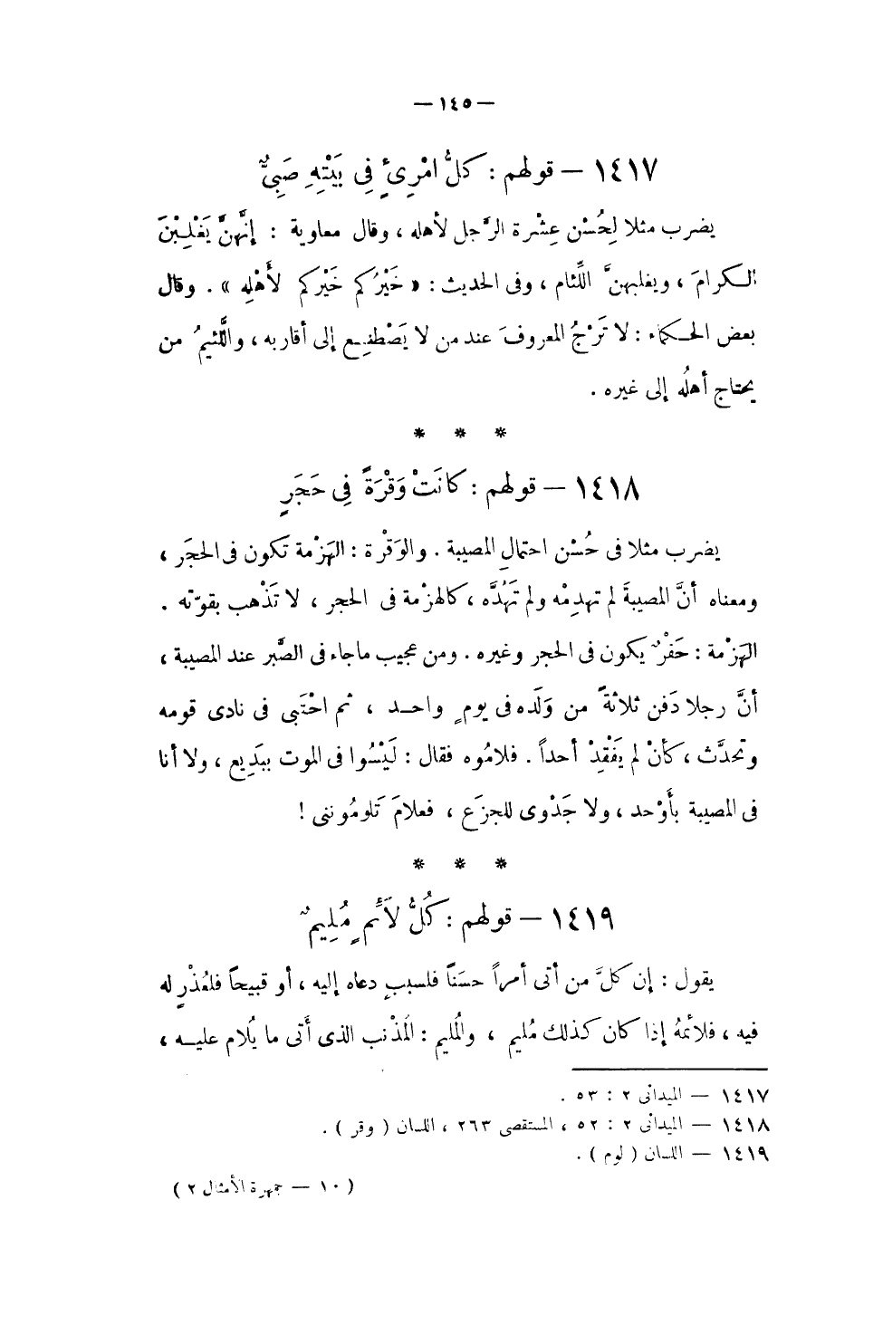 1417 - قَوْلهم كل امْرِئ فِي بَيته صبىٌ