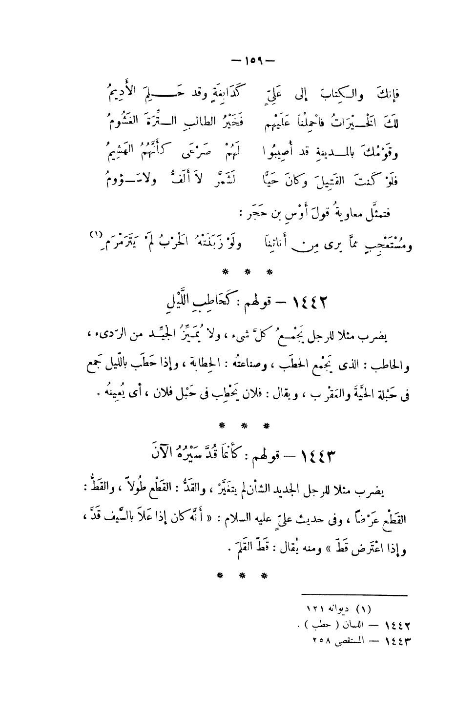 فتمثل مُعَاوِيَة قَول أَوْس بن حجر