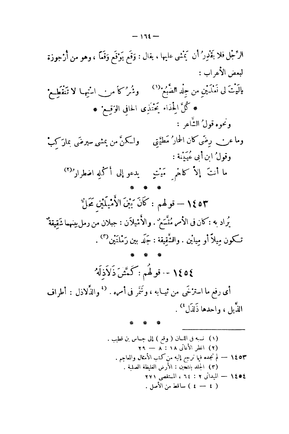 الرجل فَلَا يقدر أَن يمشى عَلَيْهَا يُقَال وَقع يُوقع وَقعا وَهُوَ من أرجوزة لبَعض الْأَعْرَاب