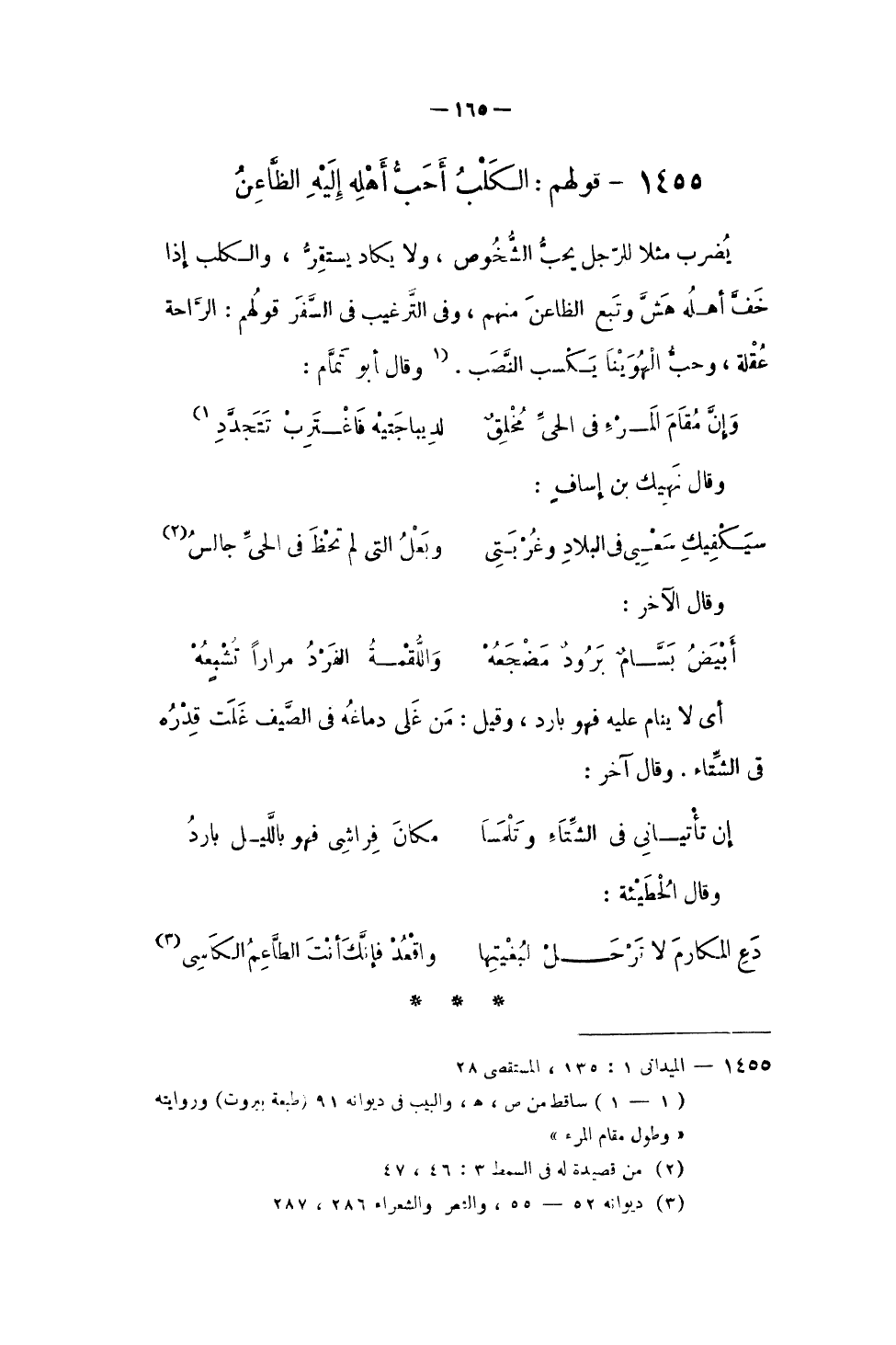 1455 - قَوْلهم الْكَلْب أحب أَهله إِلَيْهِ الظاعن