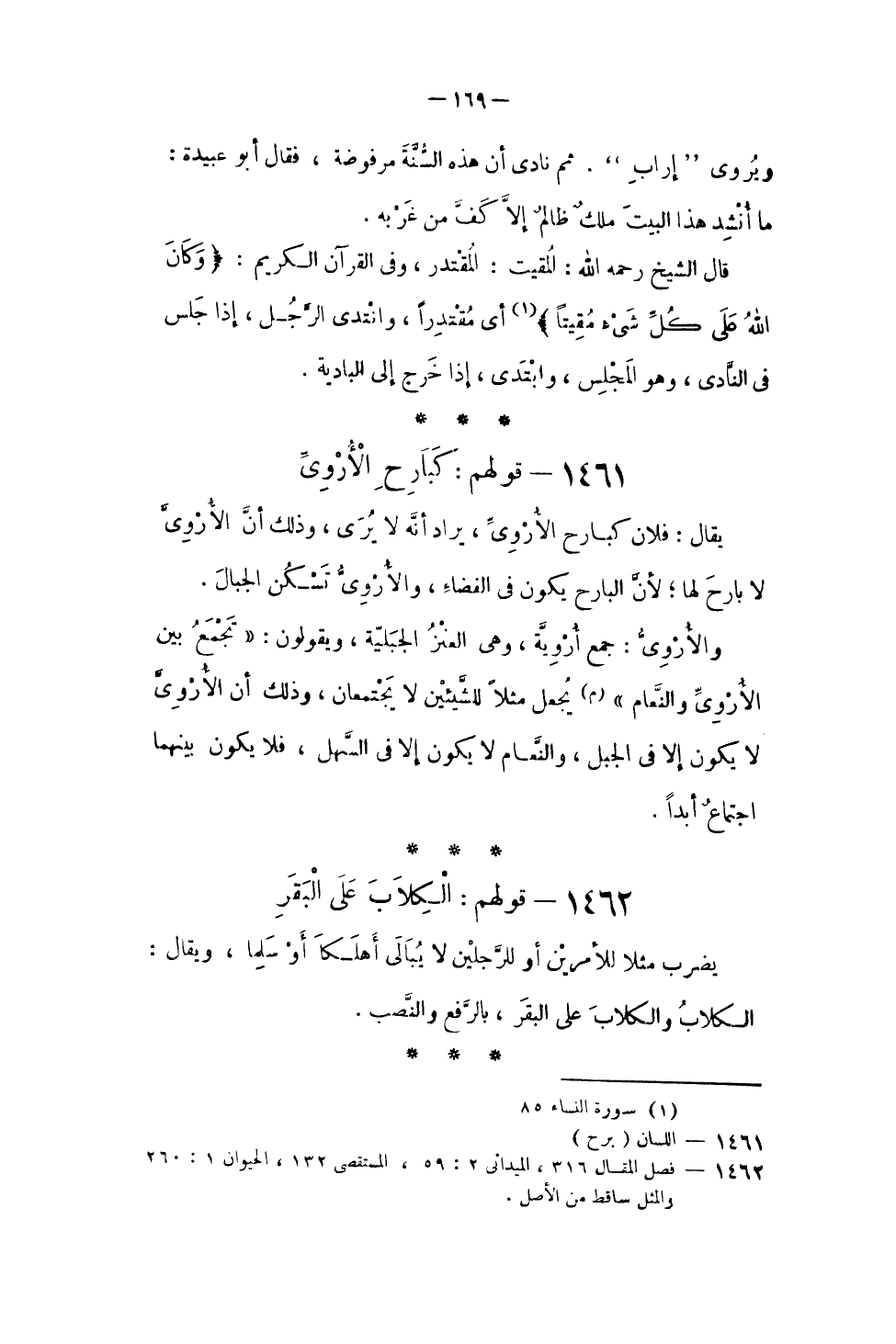 ثمَّ نَادَى أَن هَذِه السّنة مرفوضة فَقَالَ أَبُو عُبَيْدَة مَا أنْشد هَذَا الْبَيْت ملكٌ ظالمٌ إِلَّا كف من غربه