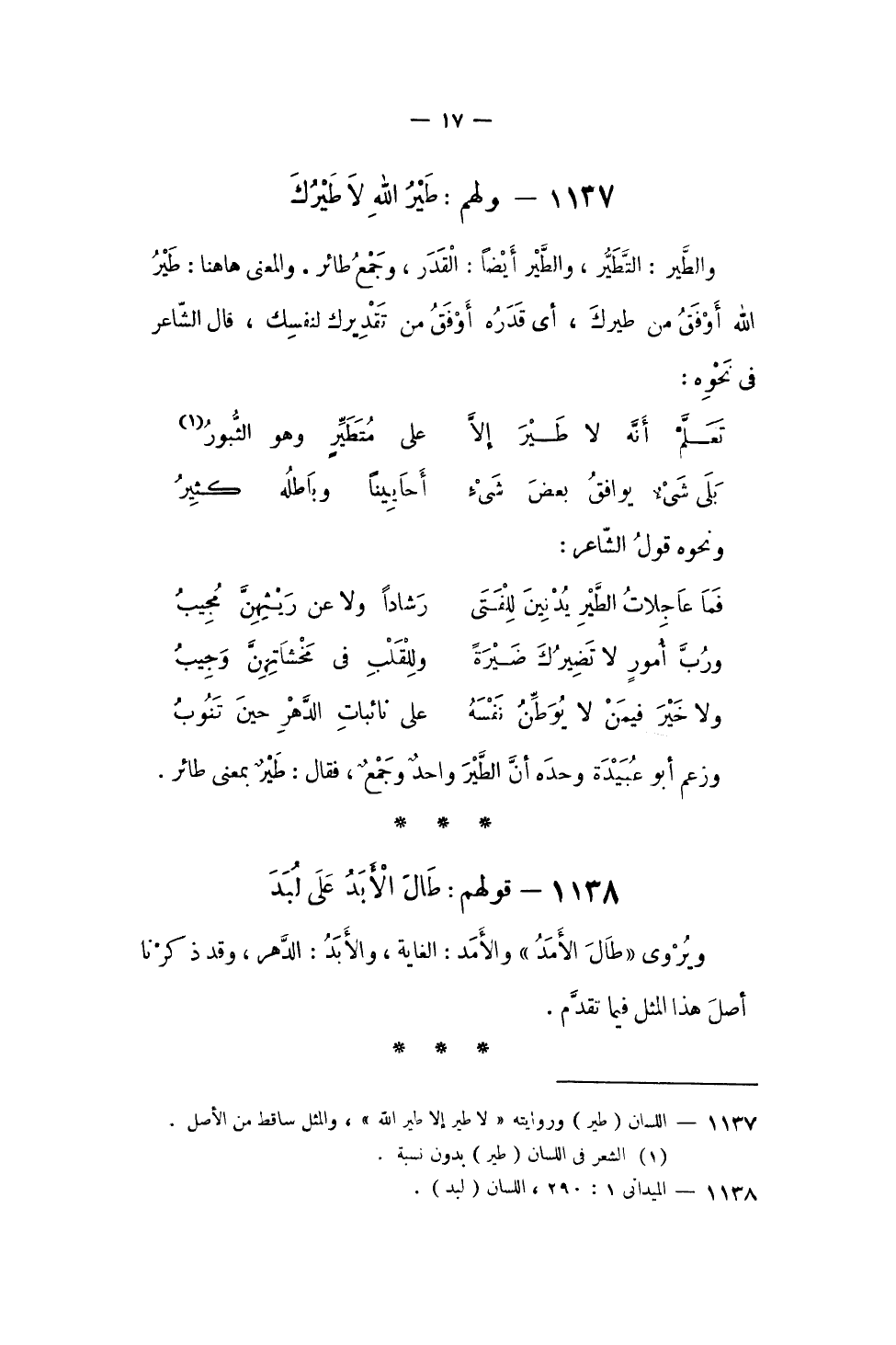 1138 - قَوْلهم طَال الْأَبَد على لبد