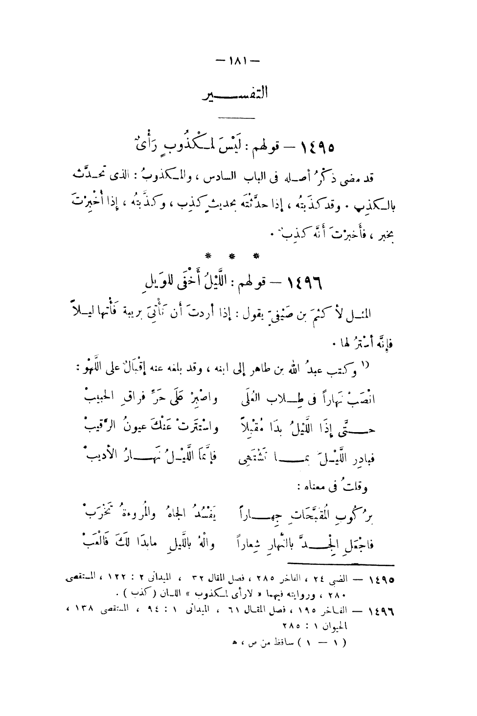(فبادر اللَّيْل بِمَا تشْتَهى ... فَإِنَّمَا اللَّيْل نَهَار الأديب)