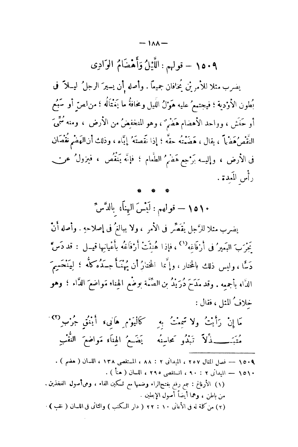 1509 - قَوْلهم اللَّيْل وأهضام الوادى