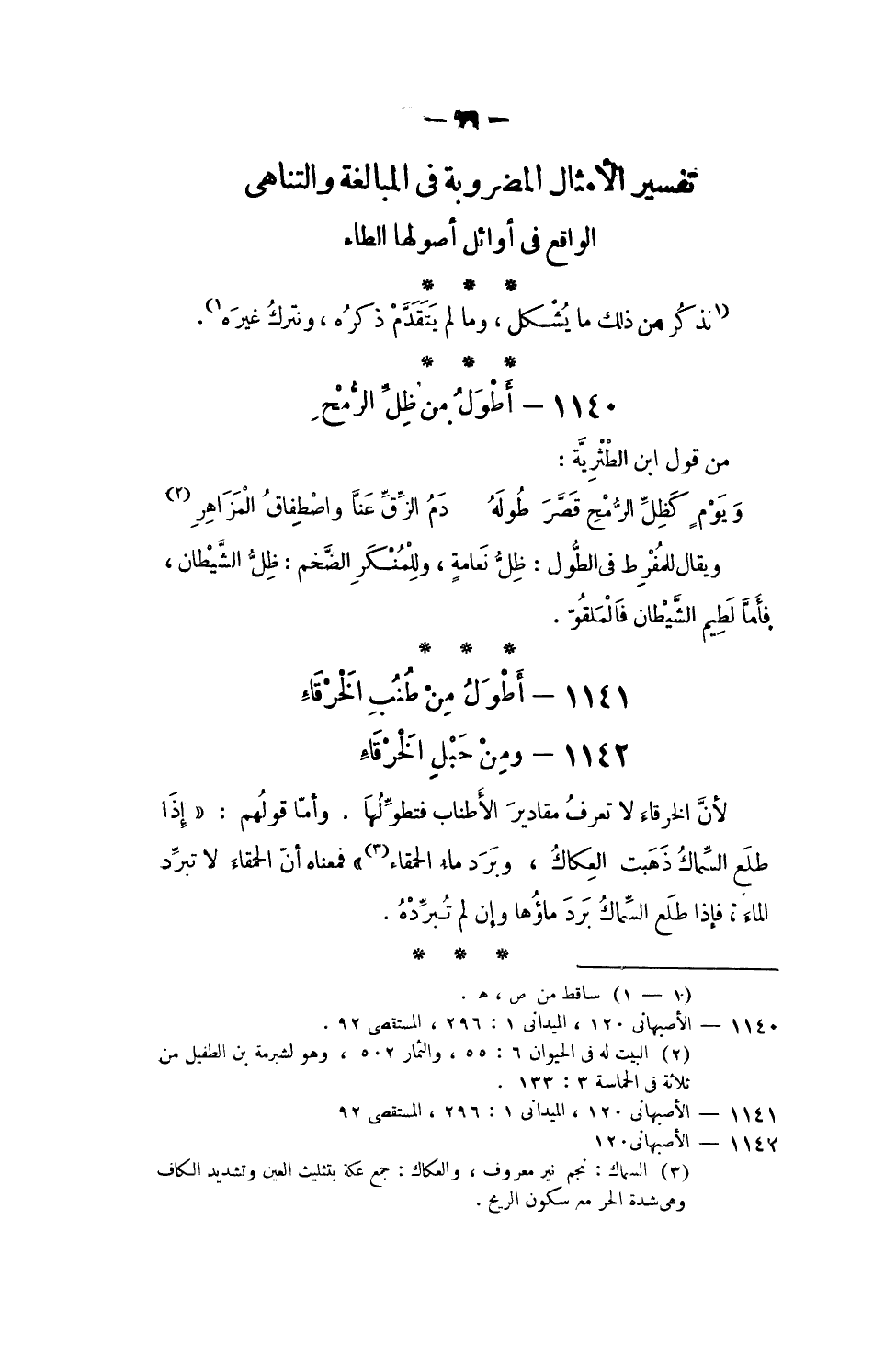 تَفْسِير الْأَمْثَال المضروبة فِي الْمُبَالغَة والتناهي الْوَاقِع فى أَوَائِل أُصُولهَا الطَّاء