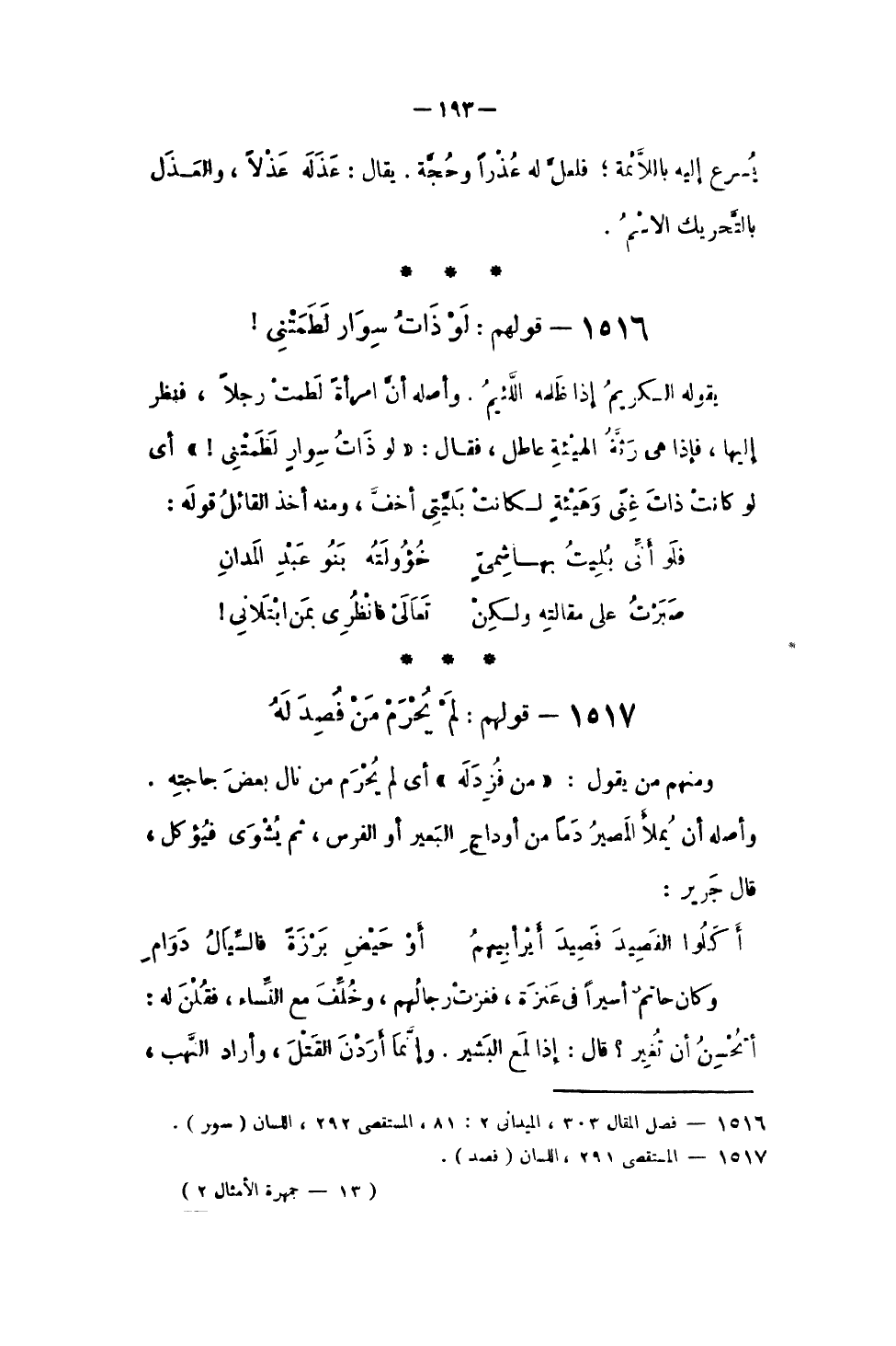 1516 - قَوْلهم لَو ذَات سوار لطمتنى