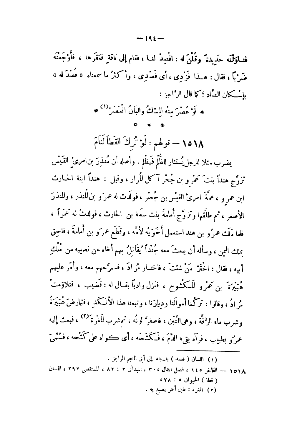 1518 - قَوْلهم لَو ترك القطا لنام