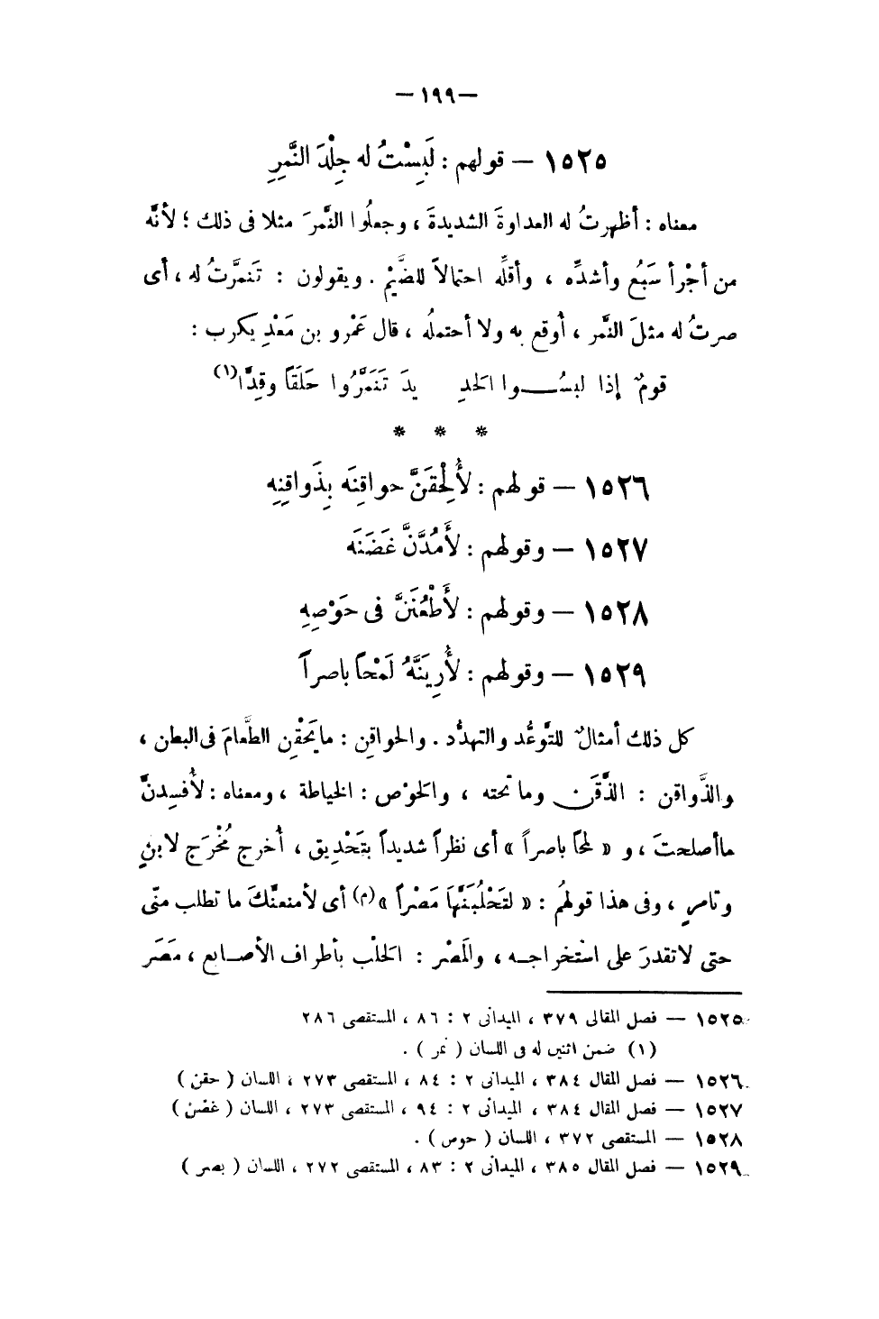1525 - قَوْلهم لبست لَهُ جلد النمر