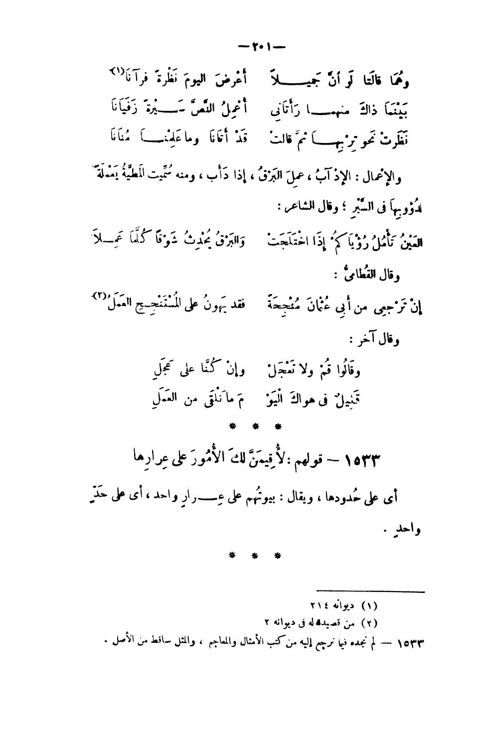 1533 - قَوْلهم لأقيمن لَك الْأُمُور على عرارها