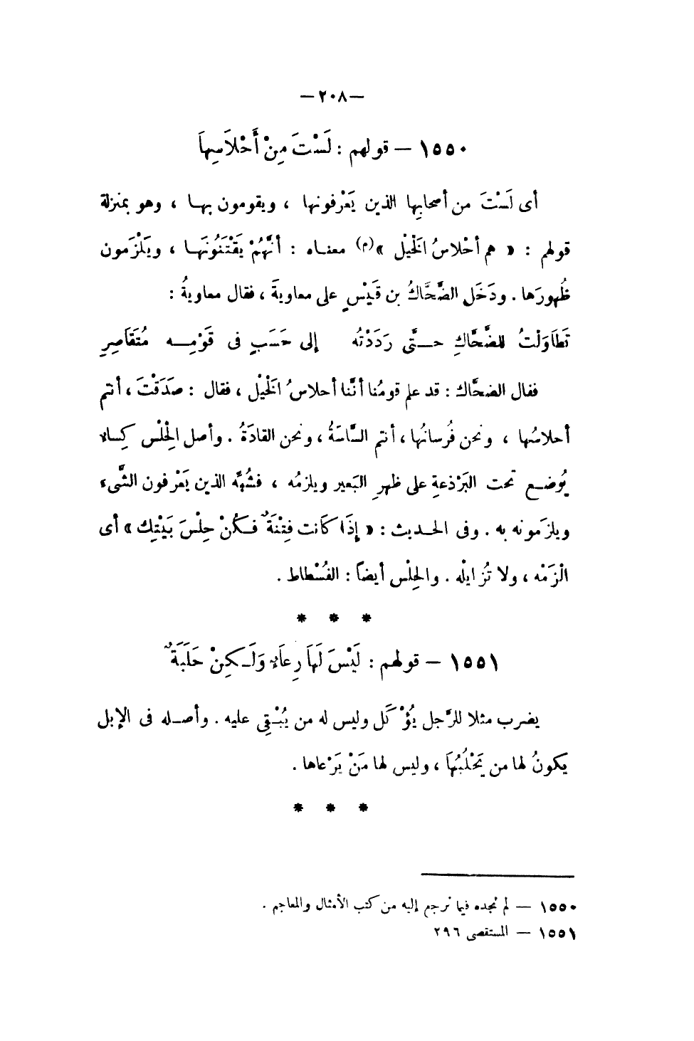 1551 - قَوْلهم لَيْسَ لَهَا رعاءٌ وَلَكِن حلبةٌ