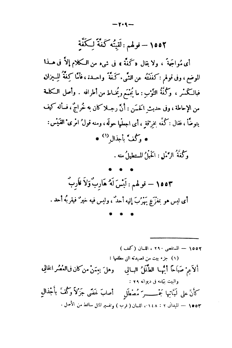 1552 - قَوْلهم لَقيته كفةً لكفةٍ