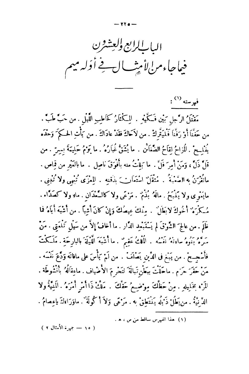 فِيمَا جَاءَ من الْأَمْثَال فِي أَوله مِيم