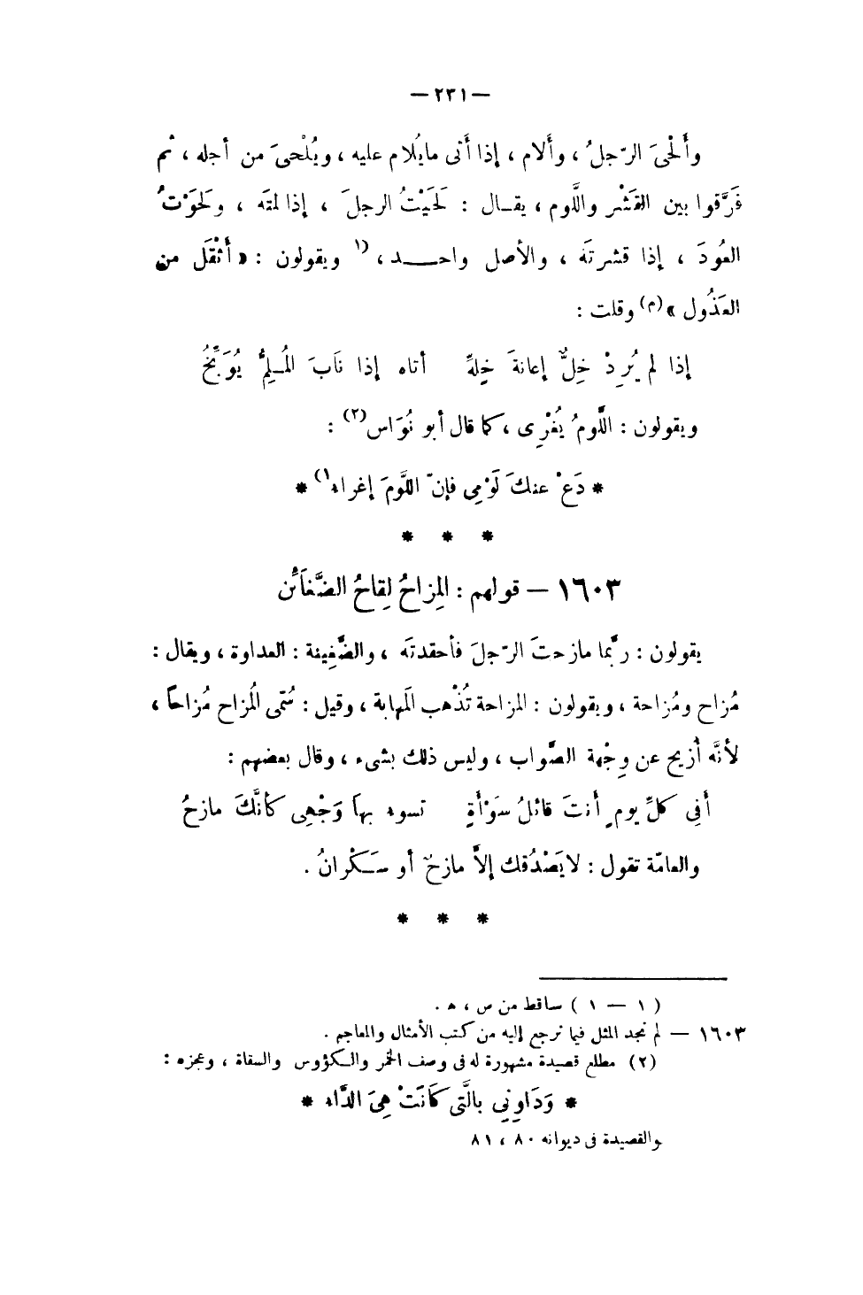 وَيَقُولُونَ اللوم يغرى كَمَا قَالَ أَبُو نواس