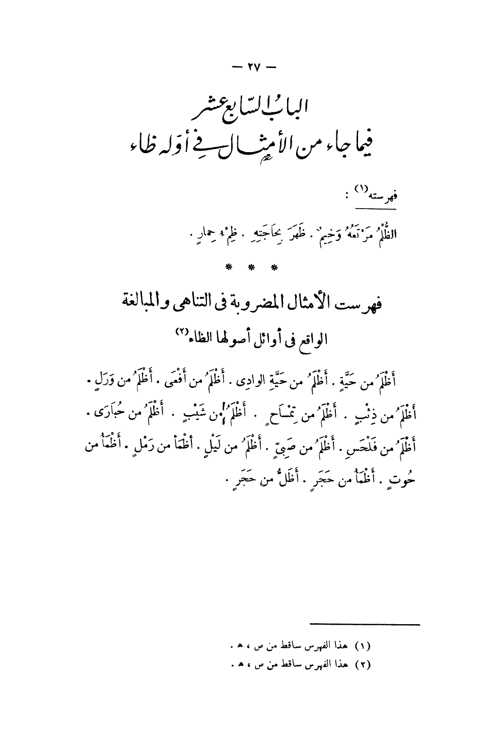 فهرست الْأَمْثَال المضروبة فِي التناهي وَالْمُبَالغَة الْوَاقِع فِي أَوَائِل أُصُولهَا الظَّاء