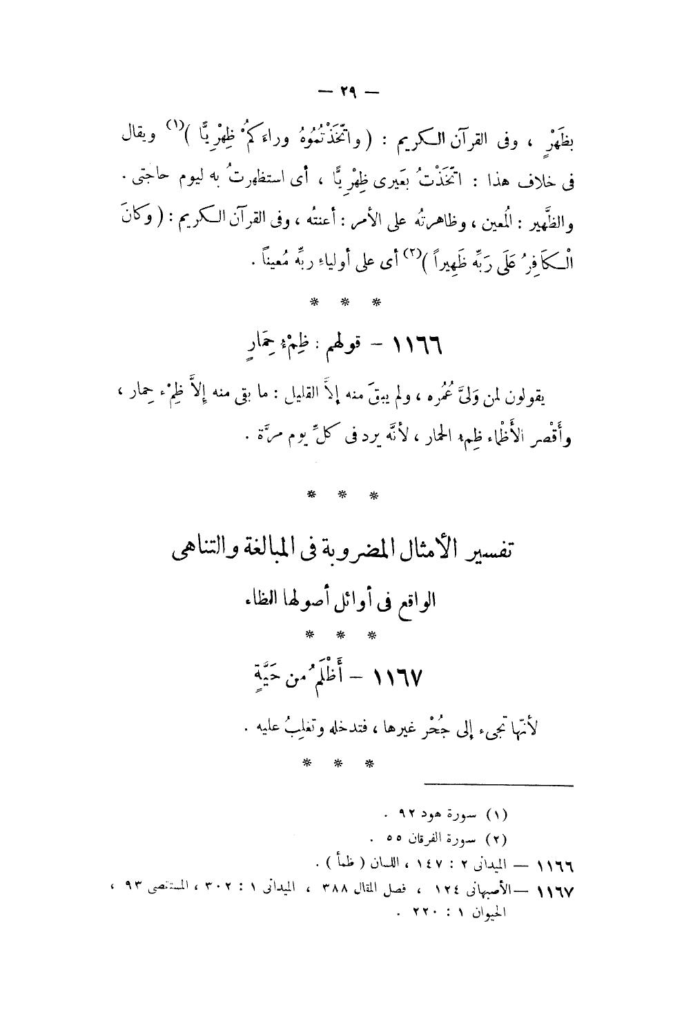 تَفْسِير الْأَمْثَال المضروبة فِي الْمُبَالغَة والتناهي الْوَاقِع فِي أَوَائِل أُصُولهَا الظَّاء