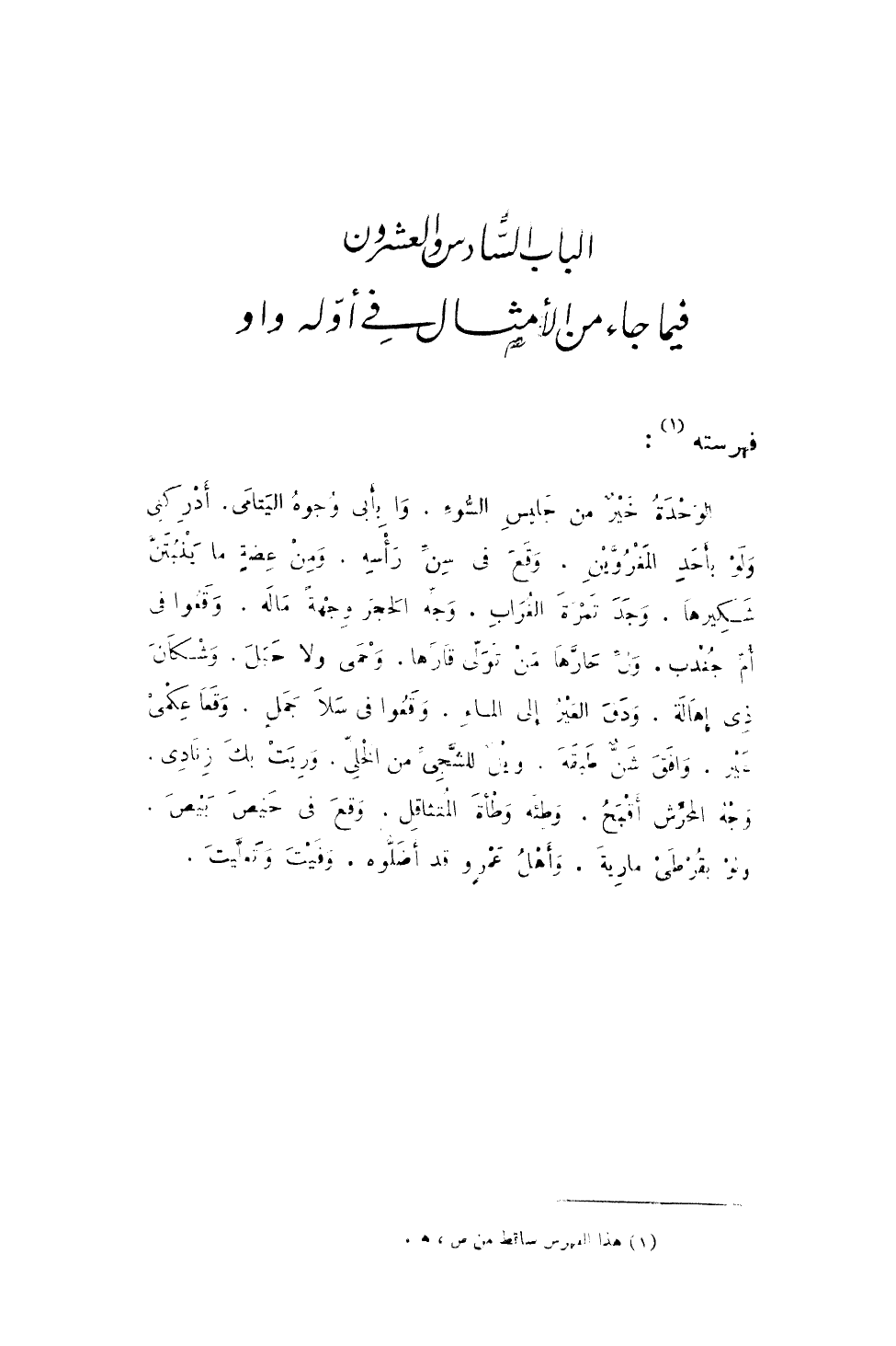 فِيمَا جَاءَ من الْأَمْثَال فِي أَوله وَاو