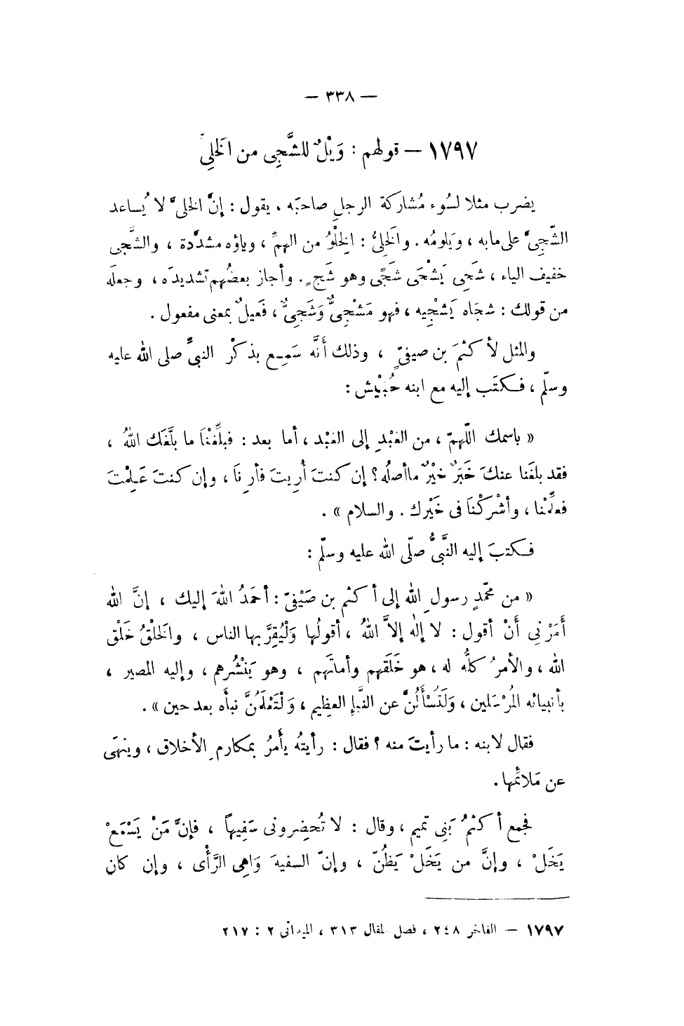 1797 - قَوْلهم ويل للشجى من الخلى
