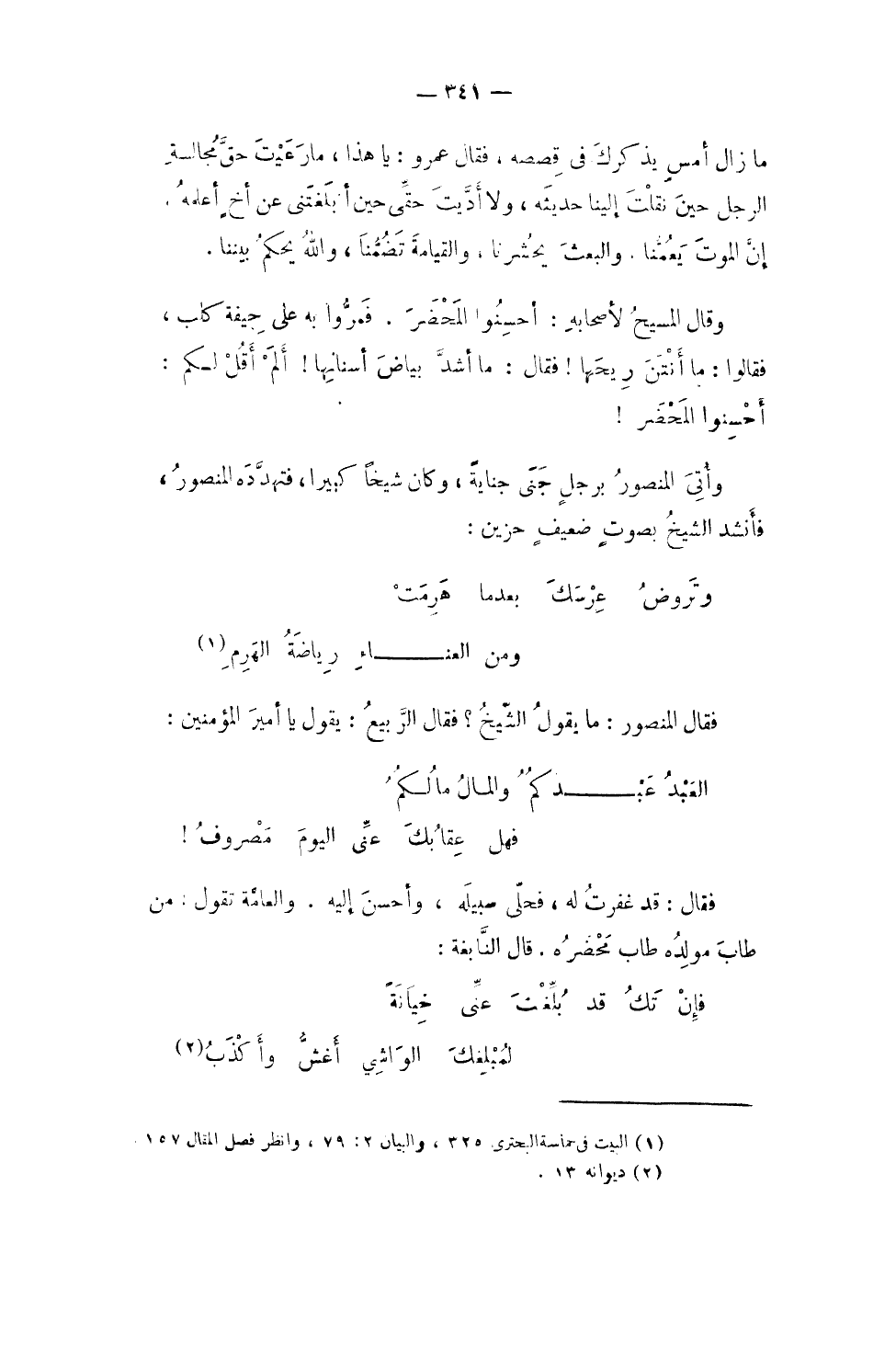 (العَبْد عبدكم وَالْمَال مالكم ... فَهَل عقابك عَنى الْيَوْم مَصْرُوف)