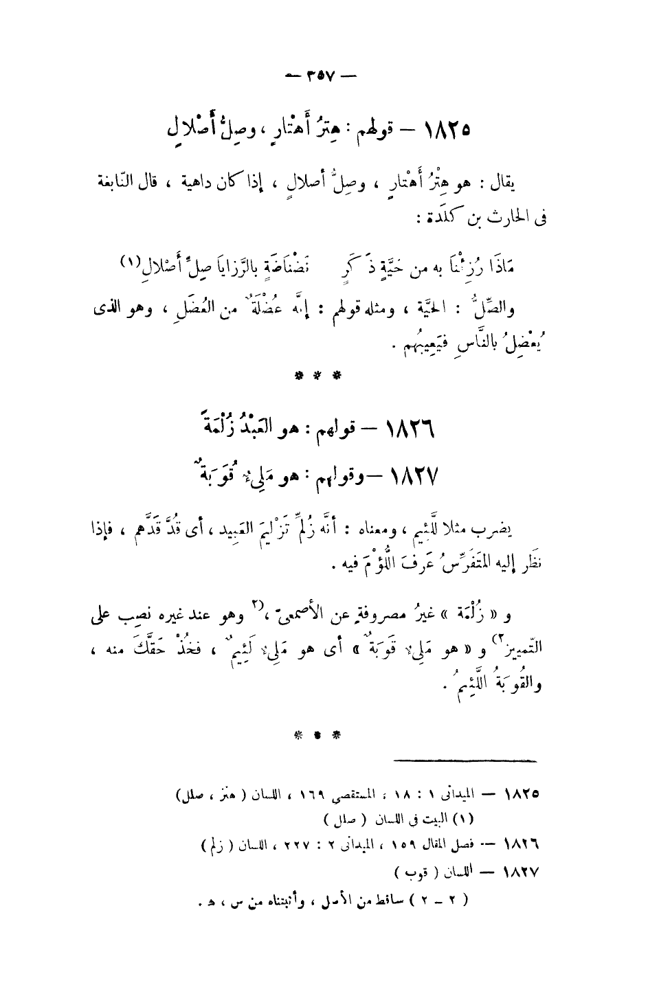 1825 - قَوْلهم هتر أهتارٍ وصل أصلالٍ
