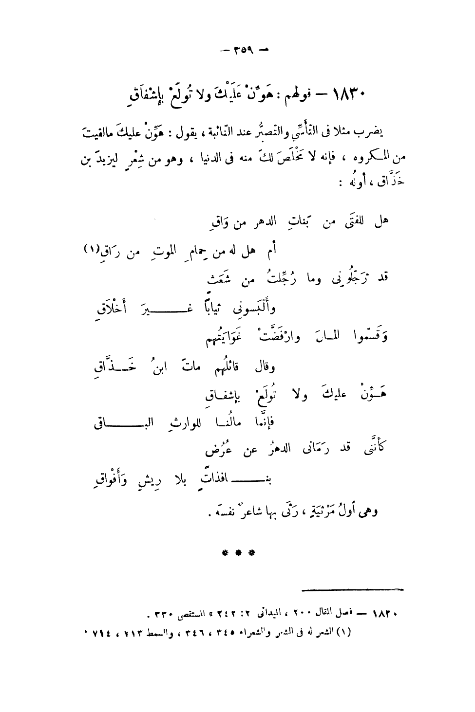 1830 - قَوْلهم هون عَلَيْك وَلَا تولع بإشفاق