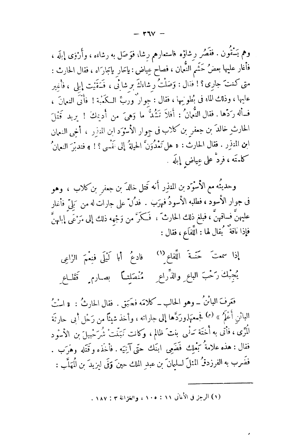 فَقَالَ الْحَارِث هَل تَعدونَ الْحِيلَة إِلَى نفسى فَتدبر النُّعْمَان كَلمته فَرد على عياضٍ إبِله