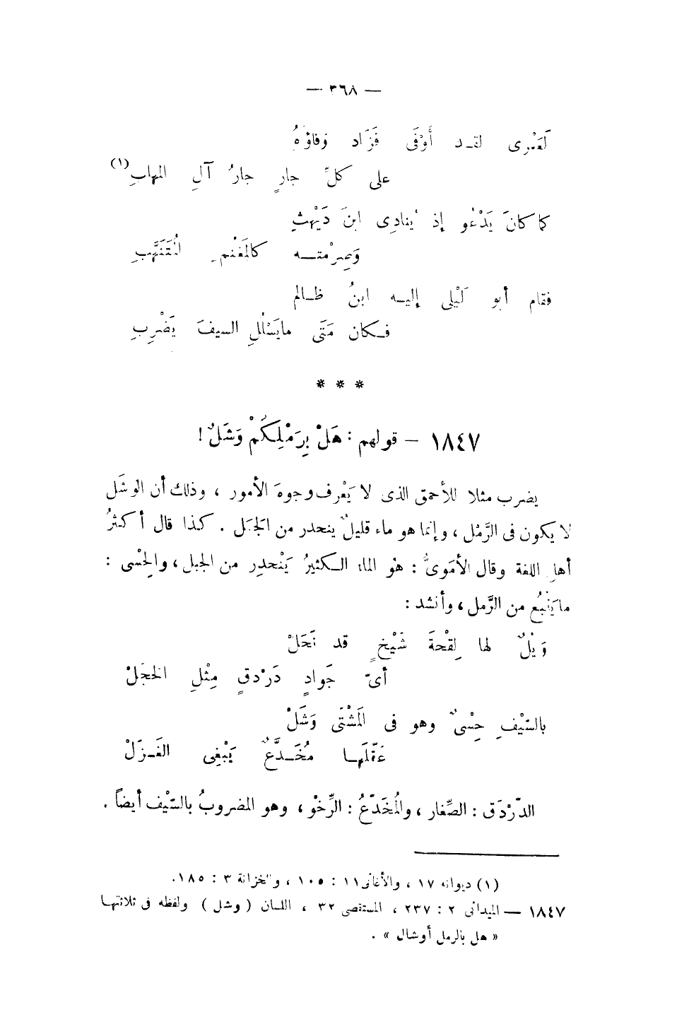 1847 - قَوْلهم هَل برملكم وشلٌ