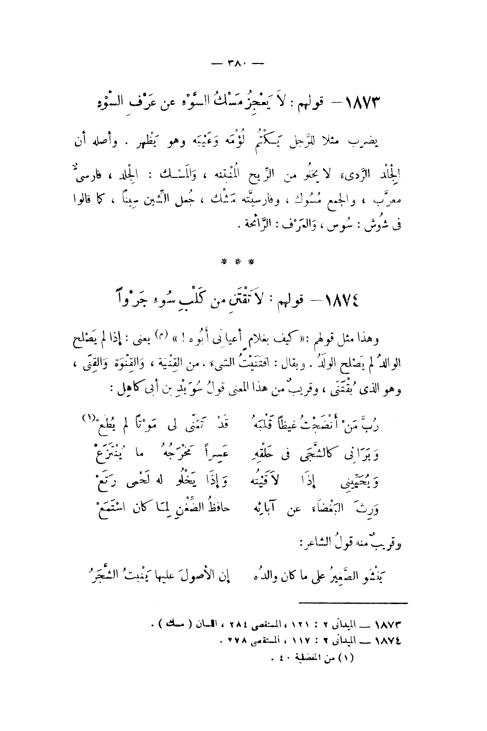 1873 - قَوْلهم لَا يعجز مسك السوء عَن عرف السوء