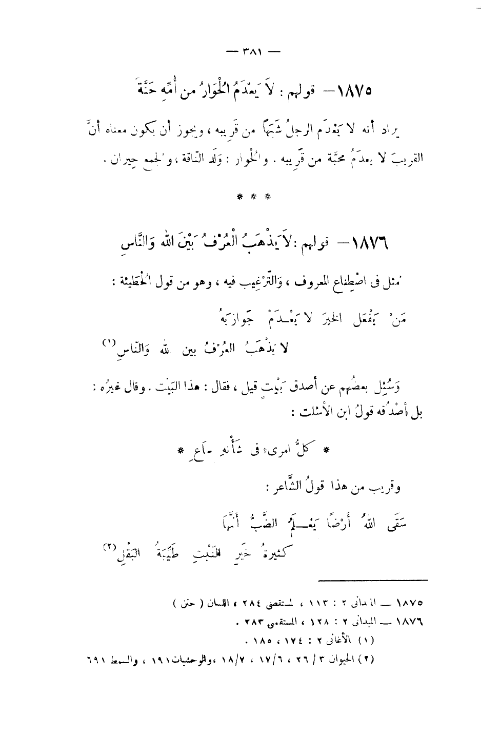 1876 - قَوْلهم لَا يذهب الْعرف بَين الله وَالنَّاس