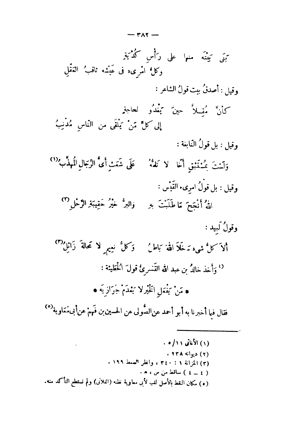 (أَلا كل شَيْء مَا خلا الله بَاطِل ... وكل نعيمٍ لَا محَالة زائل)