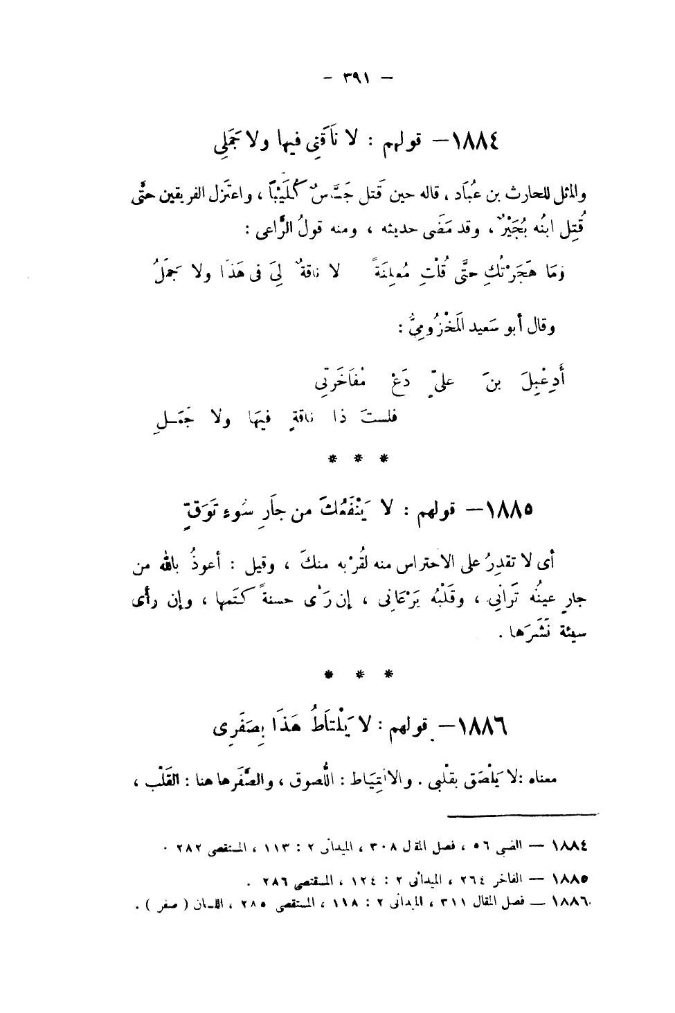 1884 - قَوْلهم لَا ناقتى فِيهَا وَلَا جملى
