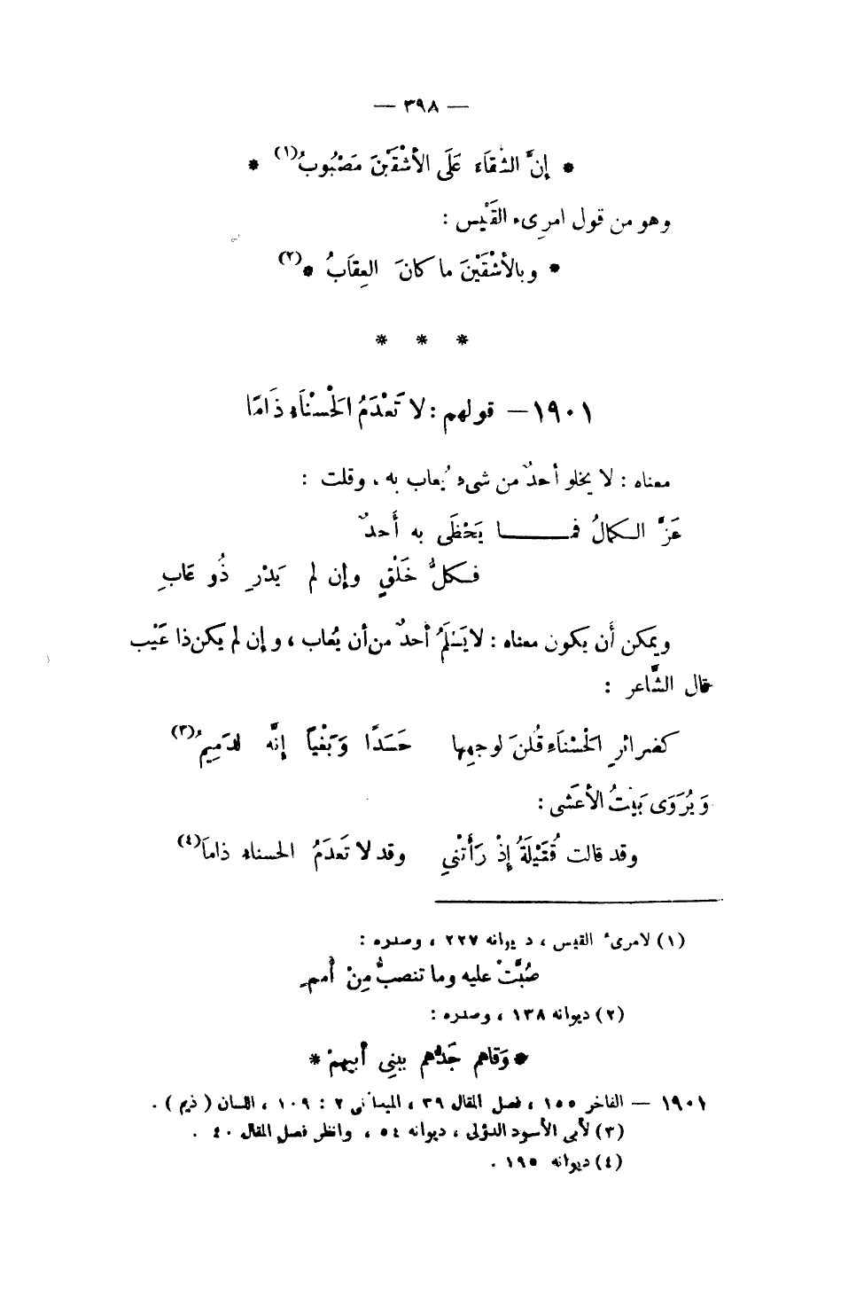 1901 - قَوْلهم لَا تعدم الْحَسْنَاء ذاماً